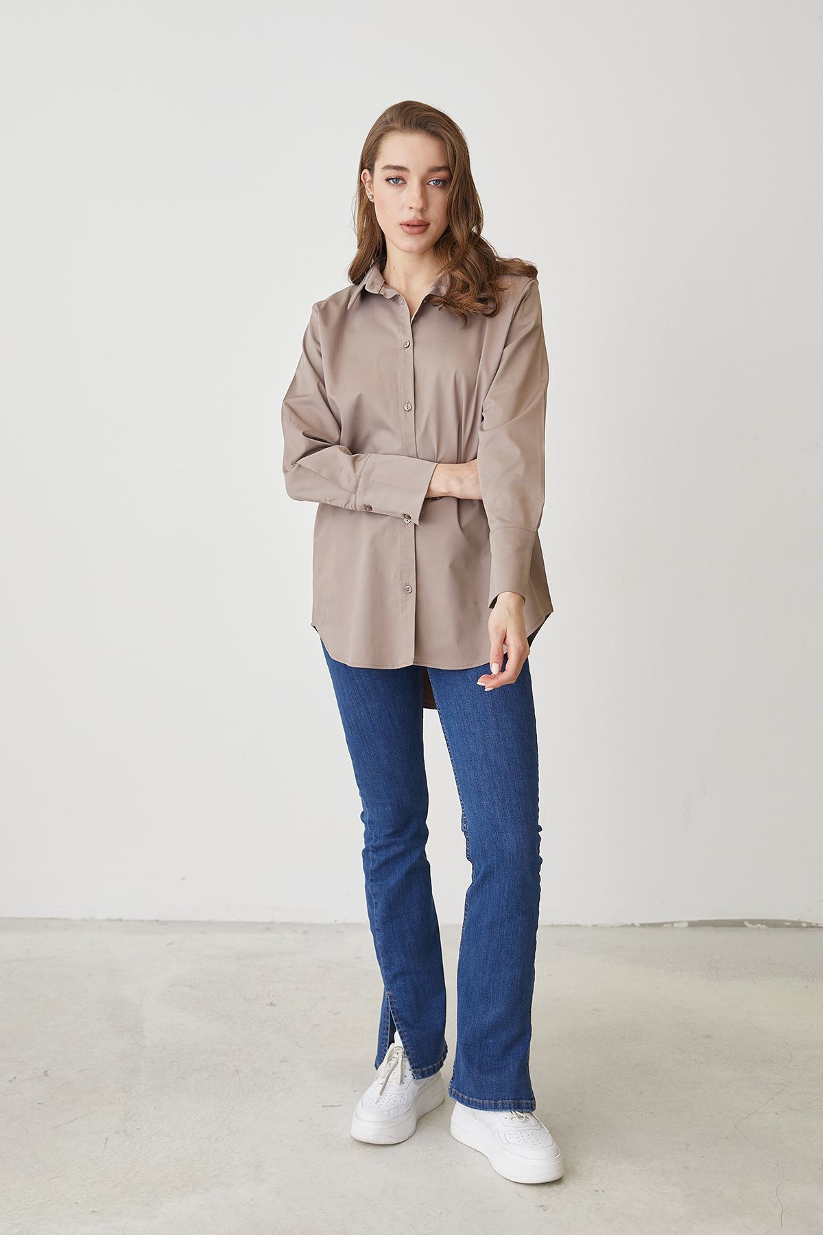 Çizgili Kısa Gömlek - Bej-Lacivert