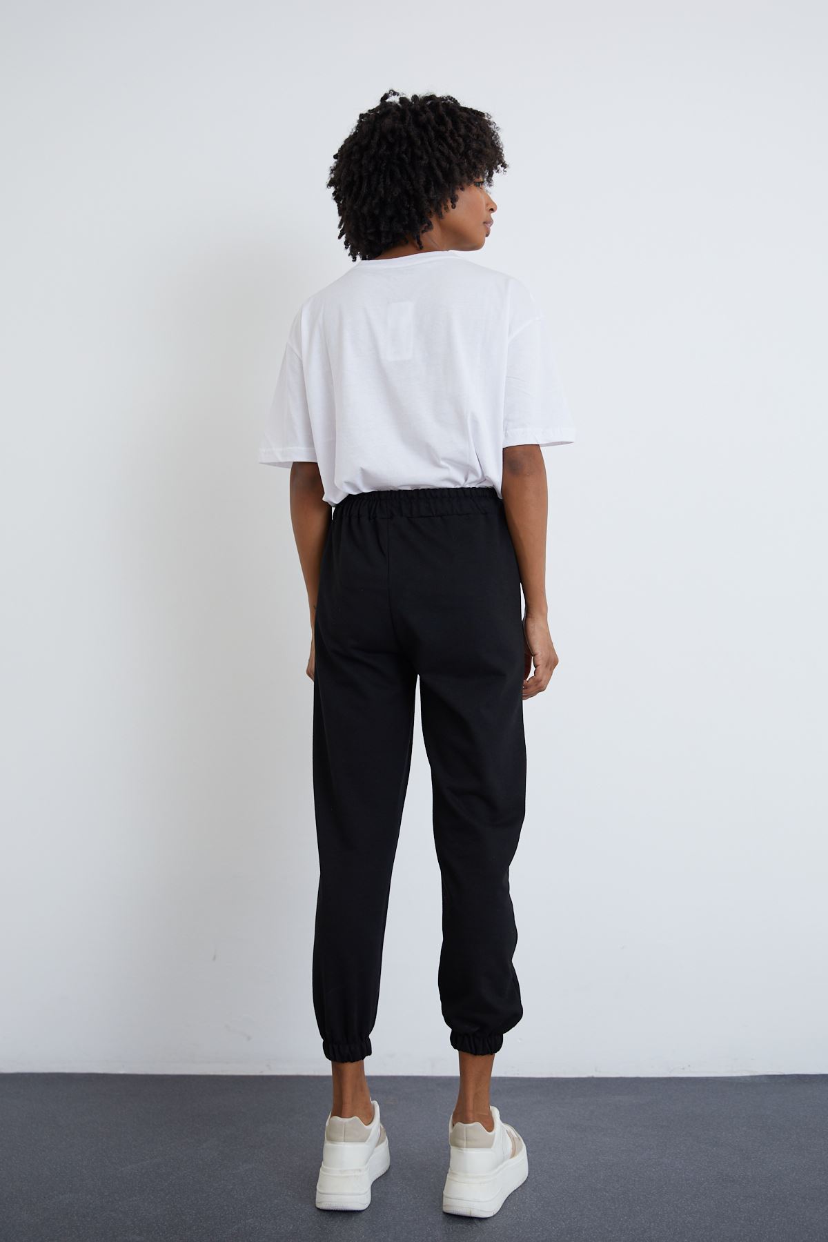 Kadın Beli Ve Paçaları Lastik Detaylı Eşofman Pantolon-Siyah