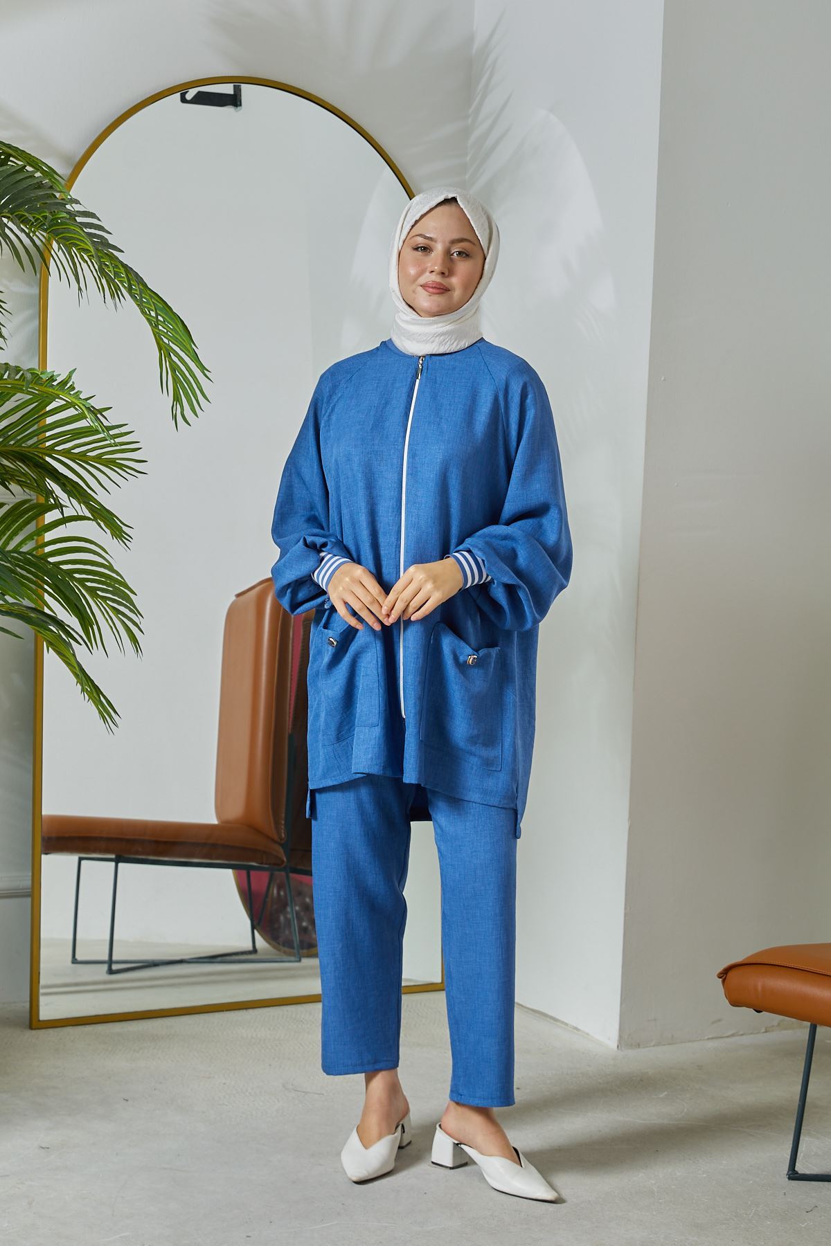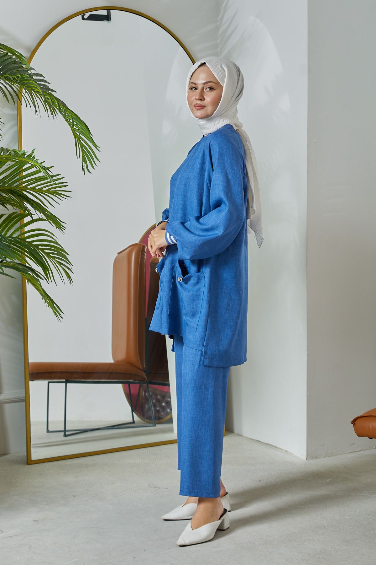 Roba Detay Pantolonlu Keten Takım-Kahve